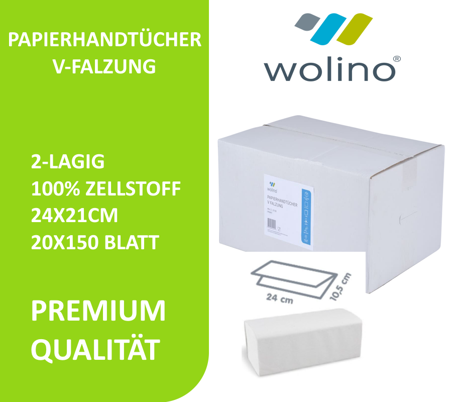 Papierhandtücher wolino® V Falzung, 100% Zellstoff, 2-lagig, hochweiss